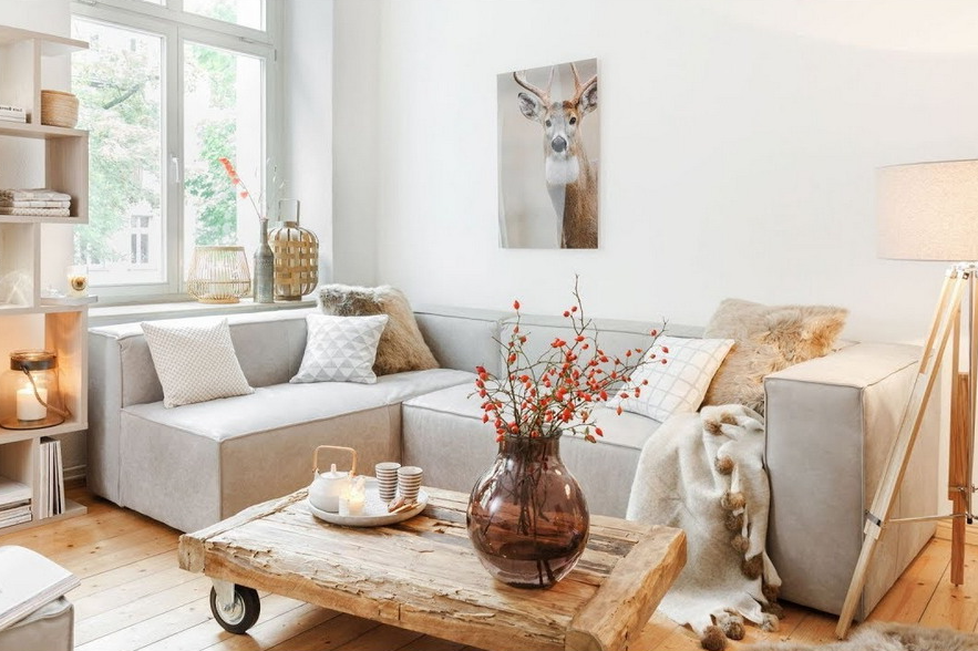 текстиль и декор для дизайна гостиной в скандинавском стиле